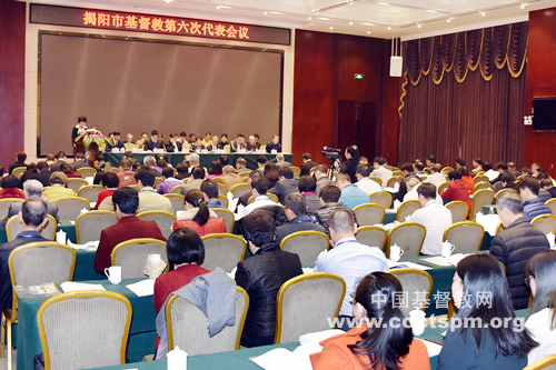 广东省揭阳市基督教第六次代表会议于2017年12月13日召开,来自全市各地基督教会的代表共128人参加了会议。会议得到市委、市政府等有关部门的重视和支持,市委常委、统战部部长庄建儿,副市长姚丽璇,统战部副部长、市民族宗教事务局局长李丽梅等领导莅临会议。庄建儿部长在会上作了重要讲话。省基督教三自爱国运动委员会主席梁明牧师、省基督教协会会长樊宏恩牧师到会表示祝贺。